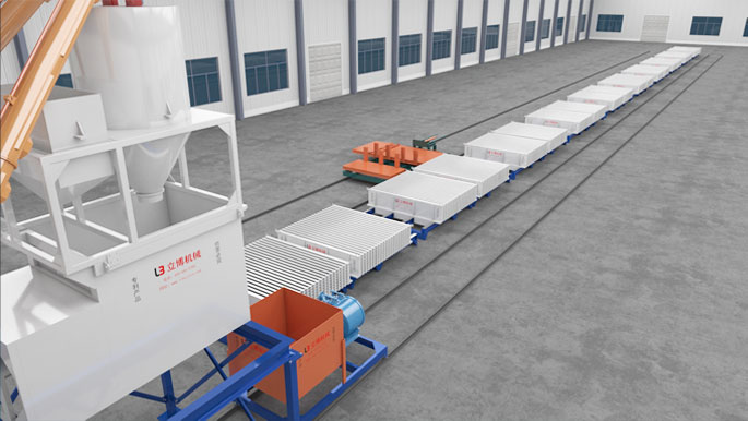 接滿(mǎn)骨料後,行走(zǒu)在預設固定(ding)軌道,對目标(biāo)模具進行澆(jiāo)🌐築🚶,代替了以(yi)往的移動注(zhù)漿車,規避在(zài)移動過程中(zhong)💯漏料問題。這(zhe)是向自動化(hua)生産發展一(yi)次重要升級(ji)。